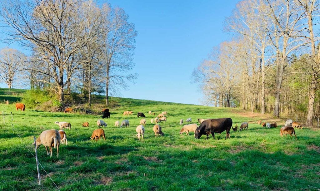 Our 80 acre farm is located in the picturesque foothills of the Appalachian Mountains in Sand Valley, Alabama. We raise registered Katahdin sheep on pasture. Our sheep are out on pasture year round. Our ewes lamb naturally and easily on pasture, not in a barn. We do not use grain as a supplement. We use rotational grazing and mulit-species grazing. We move our flerd every 2-3 days allowing 35-45 days for our pastures to recover between grazing. We offer our flerd free choice organic minerals, sea salt, kelp and fresh clean water. We supplement with grass hay as needed through the winter. Our sheep are very adapted and resistant to parasites. We have never needed to deworm our flock. We have only used dewormer on a few lambs after weaning here and there.